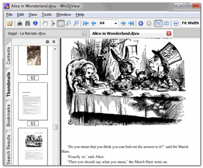 В Djvu Viewer — читалке для djvu на компьютере – имеются вкладки для использования открытых документов. Есть и другой режим — для использования каждого документа в отдельном окне. Варианты презентации — цельный и одностраничный, есть преимущества показа разворота.